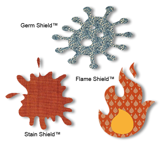 Give your woven fabric extra beneficial properties: Flame Shield™, Germ Shield™, Stain Shield™ and UV Shield™.